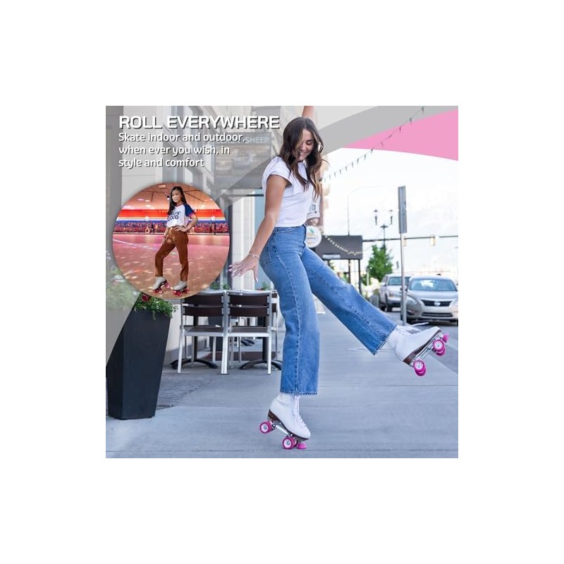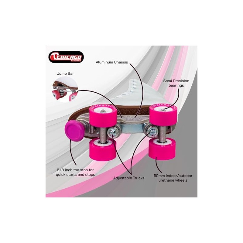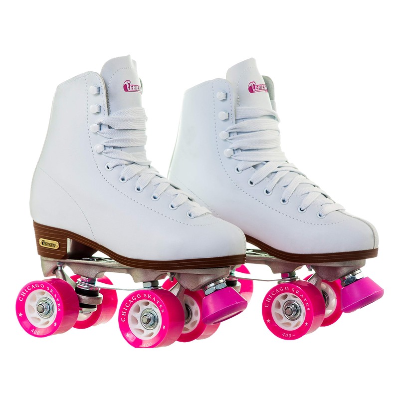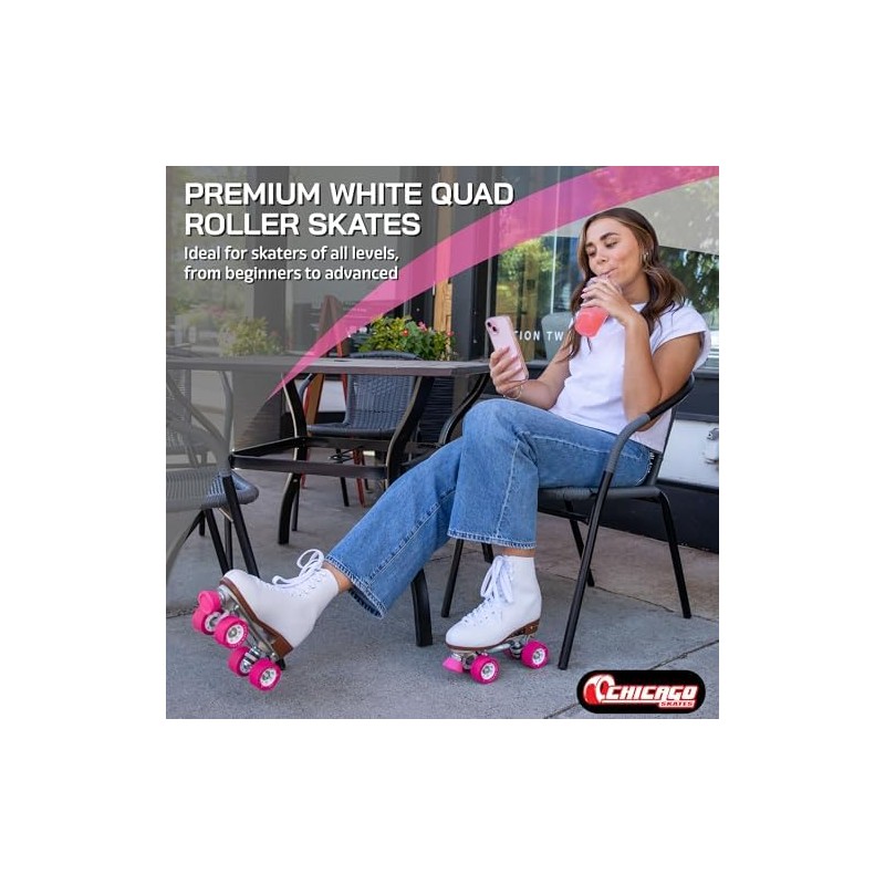 Chicago Skates Premium White Quad Roller Skates for Girls and Women Beginners Classic Adjustable High-Top Design for Indoor or Outdoor Skates and Roller Derby