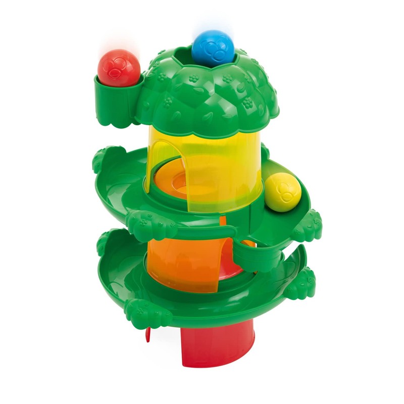 - Chicco 2-in-1 stackable tree-shaped toy, consisting of 3 transparent cups, 2 slides, a canopy and 3 balls