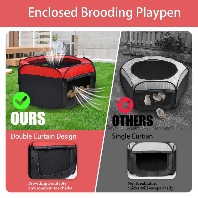 - Versatile Use - Brooder Box for Chicks : Our chicken brooder box is designed for both indoor and outdoor use. The double advanced-door design of the brooder box ensures easy access while preventing escapes. The three-sided mesh structure provides excellent ventilation, and the escape-proof mesh keeps your chicks safely contained. The warm curtains of the brooder cage offer reliable protection for outdoor use, while the breathable mesh panels be can opened indoors to maintain a comfortable environment. This versatile chick brooder box adapts to various settings, ensuring your chicks stay safe and comfortable.