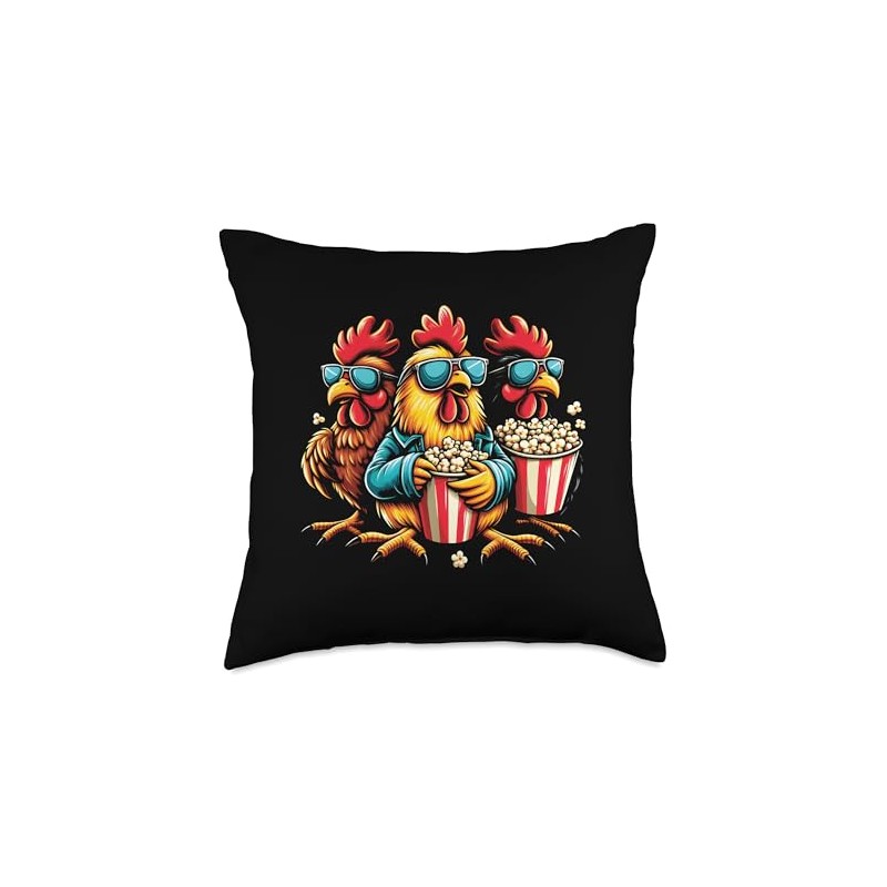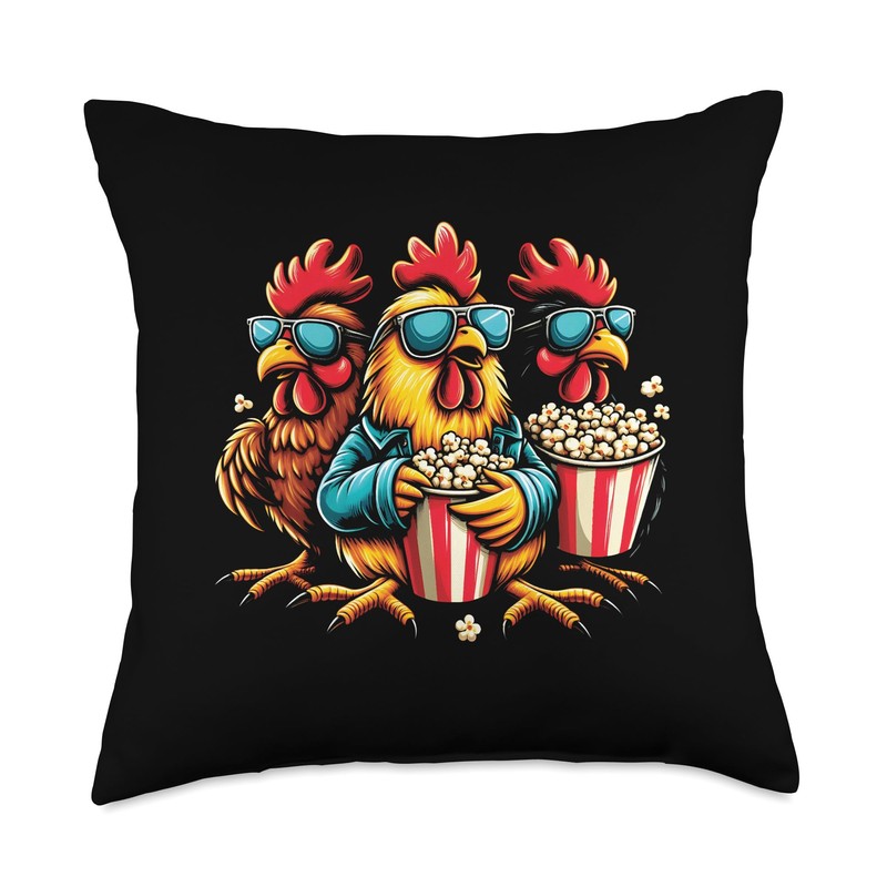 Chickens Eating Popcorn - Funny Farm Animal Popcorn Lover Throw Pillow