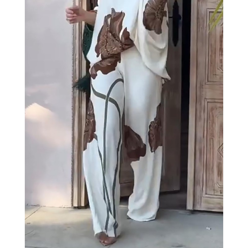 - Stylish Floral Two-Piece Set – This matching lounge set features a floral print batwing sleeve skew neck top and wide-leg pants, offering a chic and relaxed fit for spring and summer outfits