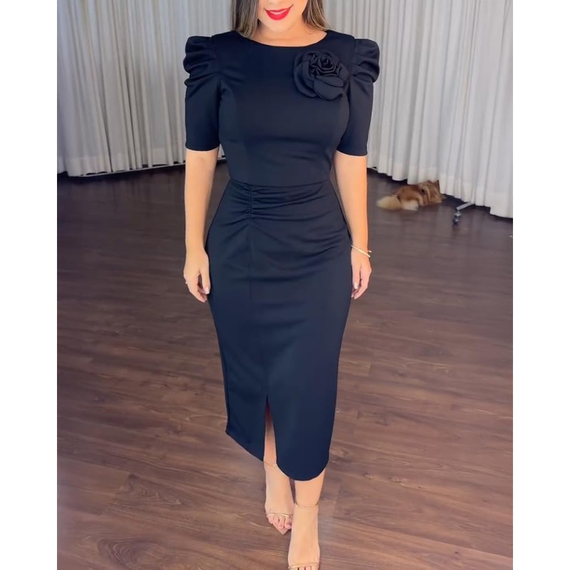 - Eye-Catching 3D Floral Accent – The three-dimensional floral embellishment of classy dresses for women brings a feminine, unique touch to this sleek and modern design
