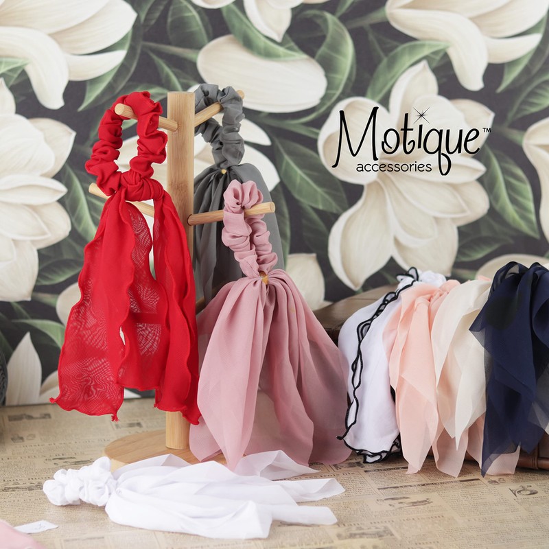 - ELEGANT DESIGN - Our Chiffon Scrunchie with Tails is the perfect accessory for any occasion. The classic design features a chiffon scrunchie with two long tails that can be styled in multiple ways.