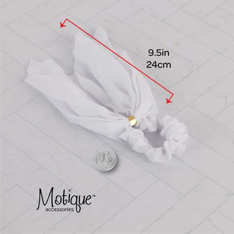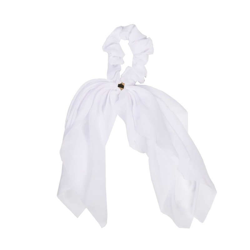 Chiffon Scrunchie with Tails Hair ties - Solid White Hair Ribbons Scarf Scrunchie