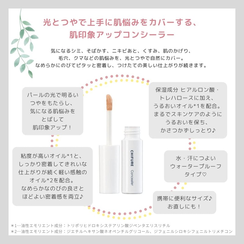 - 【光とツヤで肌悩みをカバー】シミ・そばかす・ニキビ跡・くすみ・肌のかげり・毛穴・クマなどの気になる肌悩みを、パールの光とツヤでナチュラルにカバー。厚塗りにならない自然な仕上がりで、肌印象がアップする、チップタイプのコンシーラーです。