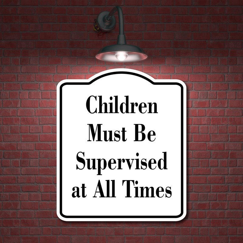 Children Must Be Supervised at All Times Child WB Aluminum Composite Sign 8.5''x10''