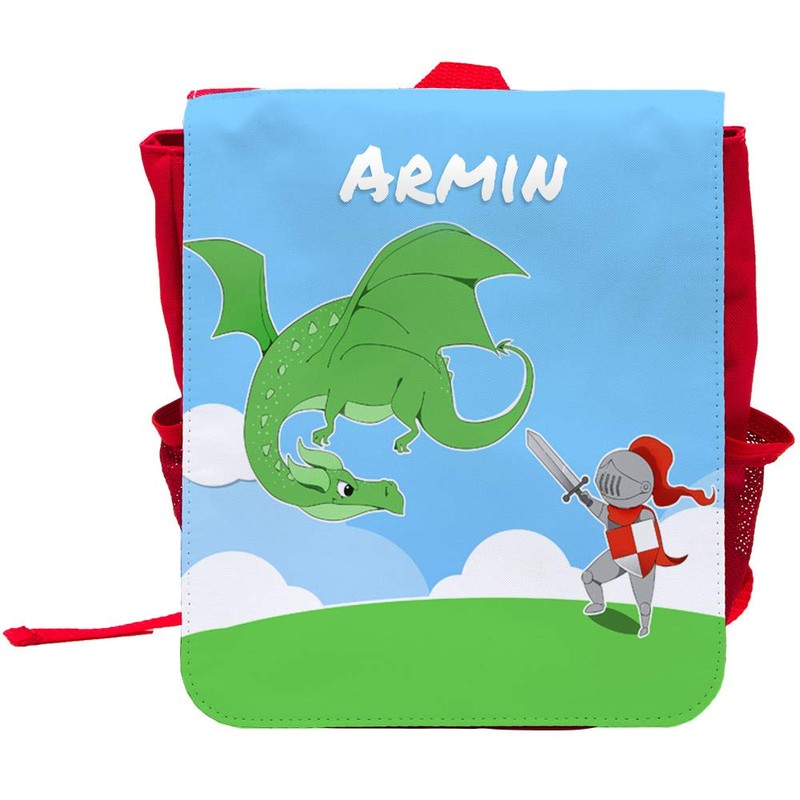 Children's Backpack with Name Armin Motif with Knight and Dragon | Boy Kindergarten Backpack