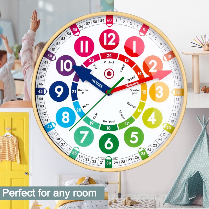 - Multiuse Feature: Our wall clocks can be used as an educational resource for your child. In addition to this, with its large 12” display it can also be used to decorate your kid’s bedroom, playroom or nursey. The clocks are so perfect for use in classrooms to make the classrooms both colourful and learning fun.
