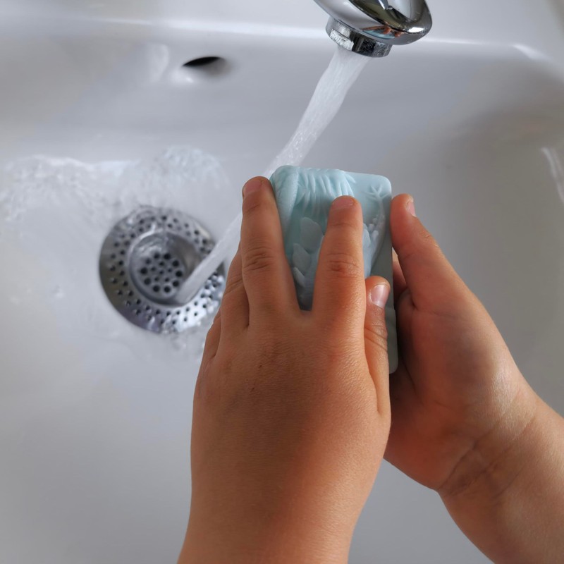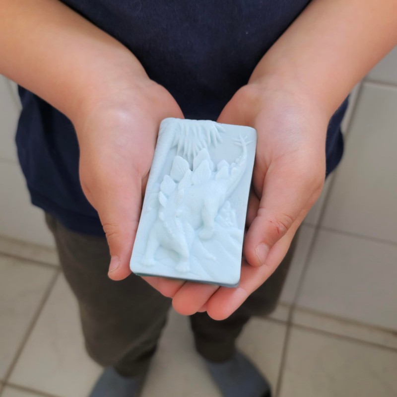 Wash band soaps - the playful way to learn to wash your hands! Transparent children's soap with integrated toy (e.g. dinosaur or pony), child-friendly 3D design (fossil or flower), mild formula and extra fun factor. Ideal for children's hands and perfect for playful introduction to hygiene.