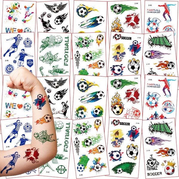 - Football tattoo children's set: the tattoo set contains 20 sheets of football tattoos, more than 200 types of patterns that can be combined as desired, suitable for football parties and children's birthday gifts. Football fans of all ages love them, especially boys.