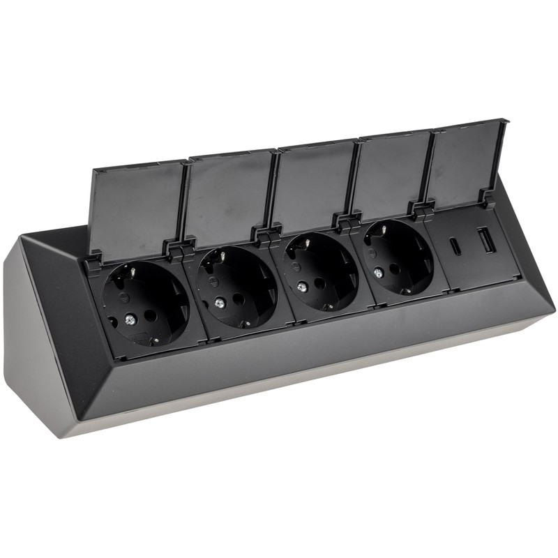 - Multi-socket with protective flaps for worktops, kitchen or work tables, pre-wired sockets inside. Protective contact sockets with increased touch protection / shutter.