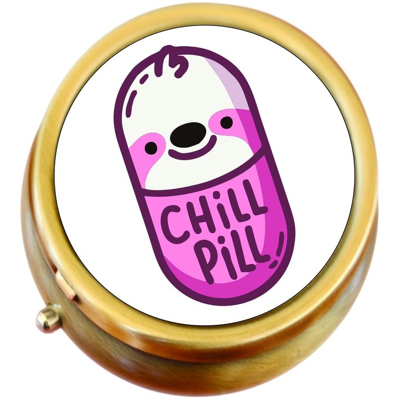 Chill Pill Cute Sloth Brass Round Pill Box