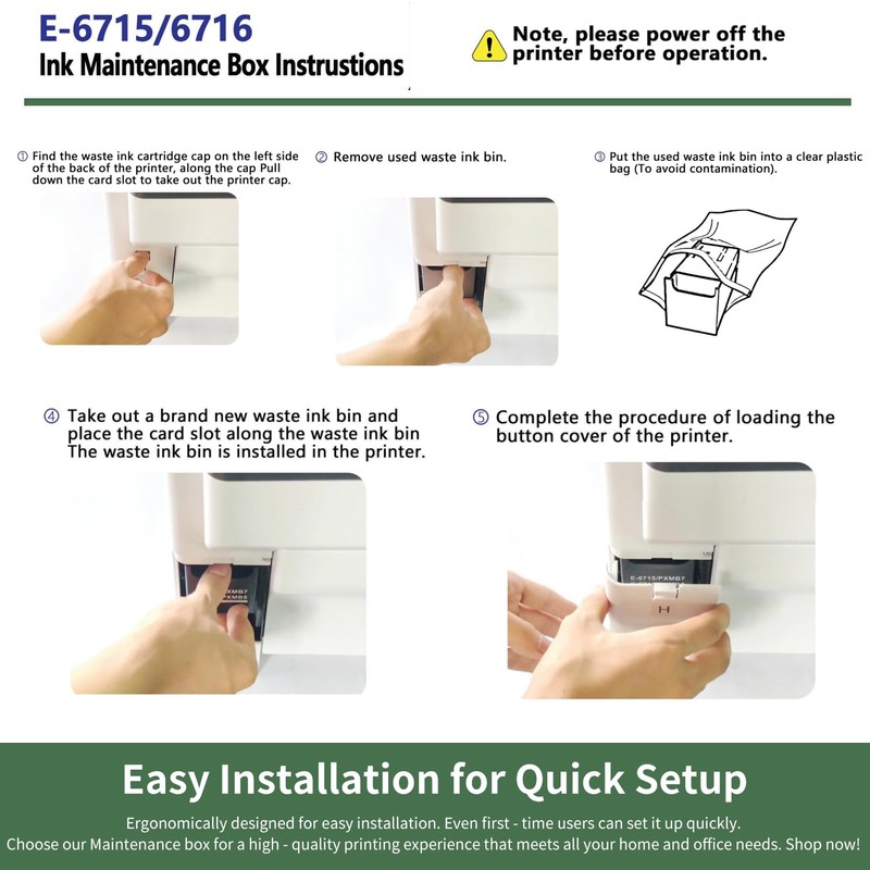 CHILLAWAY'S T6715/T6716 Ink Maintenance Box Keep your printer running smoothly with our high-quality, compatible ink maintenance box! Designed to replace the waste ink tank, this product offers exceptional performance at an affordable price. Perfect for both home and office use, it ensures your printer stays in top condition while saving you money.
