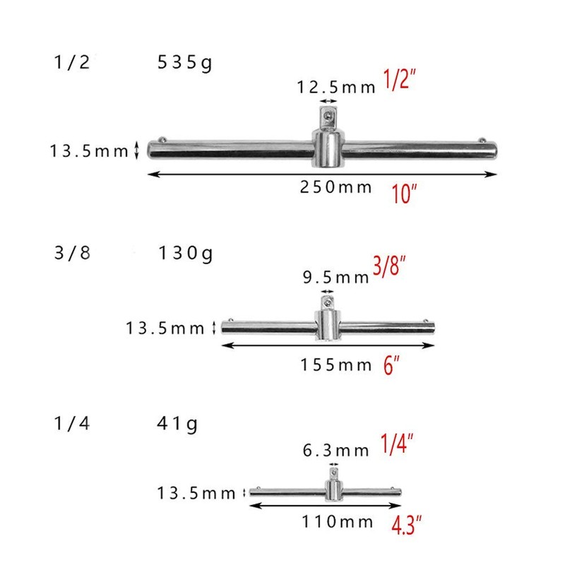 Chiloskit 1/4" T-Handle Socket Breaker Bar Wrench Extension Sliding Bar T-Handle Nut Driver Socket Adapter For Car Repair Hand Tool (1/4)