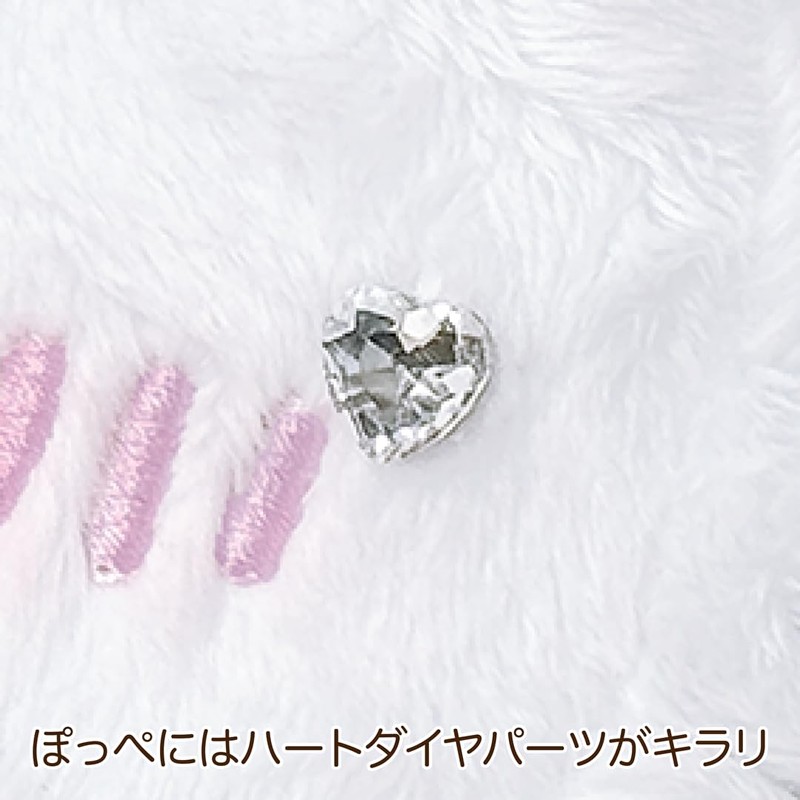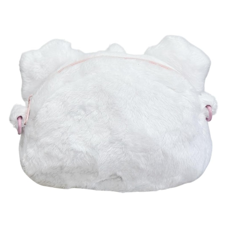 - Soft plush pouch with fluffy face design and a pink cheek with trademark ribbon for a charm point