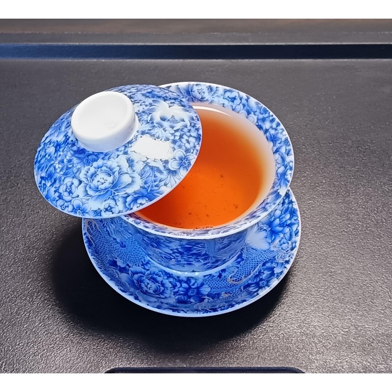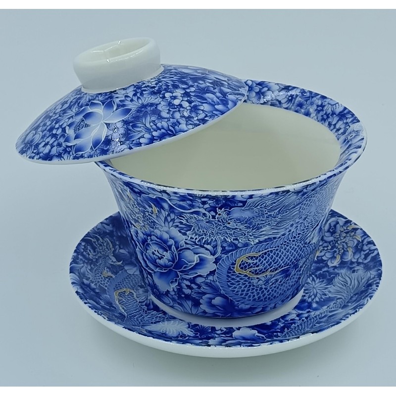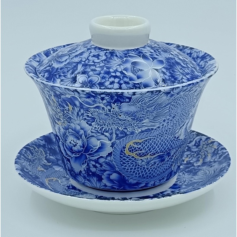 - EXQUISITE APPEARANCE - This Chinese ceramic tea bowl adopts a beautiful Dragon appearance design.Drawing Filigree Dragon in bule background , Implies nobility and strength