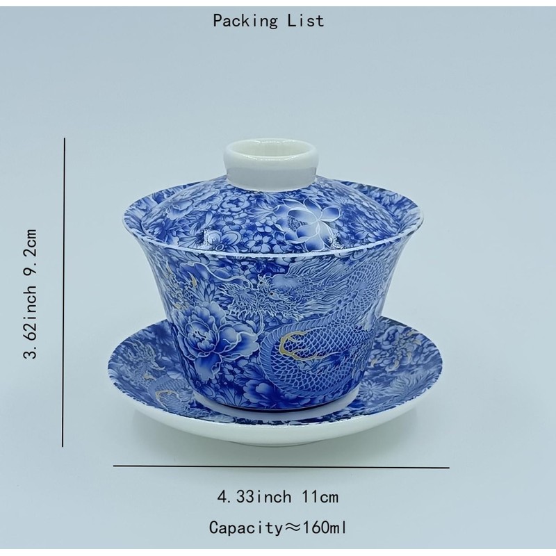 - SUITABLE CAPACITY - Chinese traditional porcelain tea bowl wiht lid and saucer, 5.41 oz (Use capacity 160 ml), the capacity is enough for your daily drinking