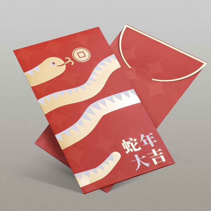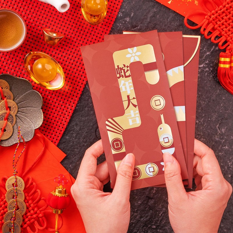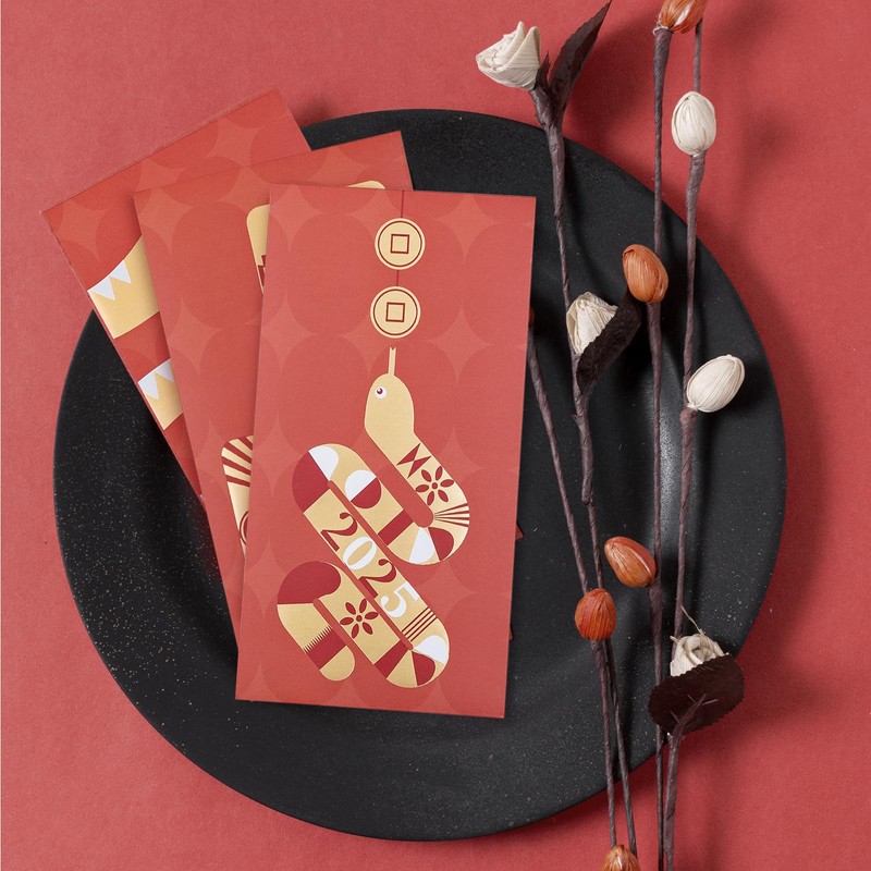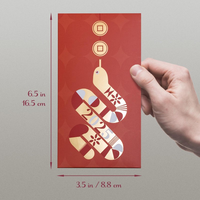 - Retro Snake Game-Inspired Designs: Pack of 15 red envelopes featuring three unique designs inspired by the classic Snake mobile game, with playful snake and coin motifs symbolizing luck and abundance.