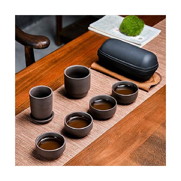 Easy to Use and Space Saving:This portable kung fu tea set is light and small, and easy to carry.Easy to use, can quickly filter and remove the tea residue, easily brew all kinds of tea.Easy to clean, equipped with travel bag, convenient to place all the tea sets,saving space.