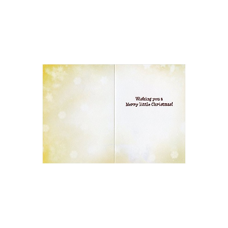 The interior of this Avanti Press Christmas card design reads: Wishing you a Merry little Christmas! The card measures 4.75x6.7 inches and is printed on recycled heavy cardstock. Includes 1 card and 1 envelope. The card has the following special features: glitter, textured paper, gold foil. High-quality textured card stock is featured on this wonderful Christmas card design from Avanti Press. Gold foil and glitter bring a wonderful sparkle to the star and snow on the front panel while red foil lettering on the interior verse adds another touch of class. Made in the USA. Printed on FSC certified recycled paper.