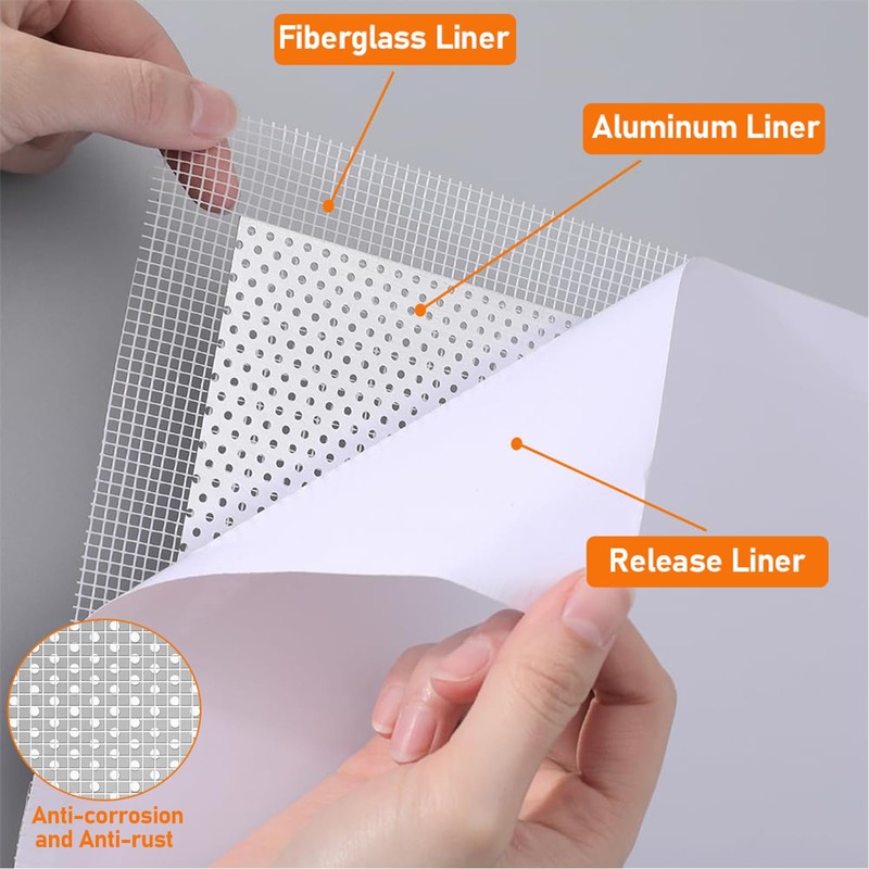 - Premium Material: Drywall wall patch made of aluminum sheet, fiberglass tape and release paper, lightweight, high strength, strong adhesion,anti-corrosion and rust prevention,which can stay for a long time without falling off.