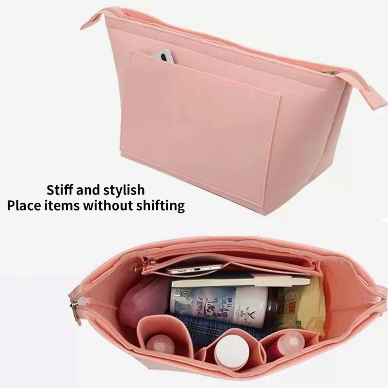 Chispee Purse Organizer Insert for Handbags, Felt Bag Organizer with Zipper Handbag Organizers Longchamp Divider Pocket & Zipper Inner Bag Liner (Pink,S)