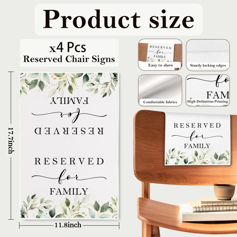 - Universal Fit: Each reserved seat sign measures approx. 30 x 45 cm / 11.81 x 17.72 inches, making it suitable for most standard chairs and benches. The size ensures that the message is easily visible to guests, while remaining easy to store and carry.