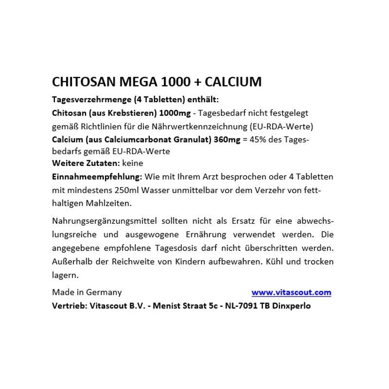 CHITOSAN MEGA + CALCIUM - 270 Tablets - High Dose - No Magnesium Stearate - Made in Germany - SB*: Fat Blocker Diet Carb Blocker Low Fat