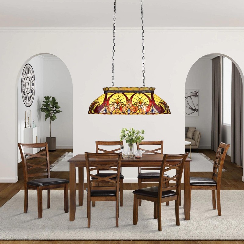 Chloe Lighting Adia Victorian Tiffany-Style Dark Bronze 3 Light Island Pendant 28" Wide