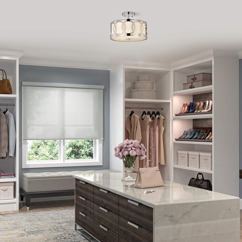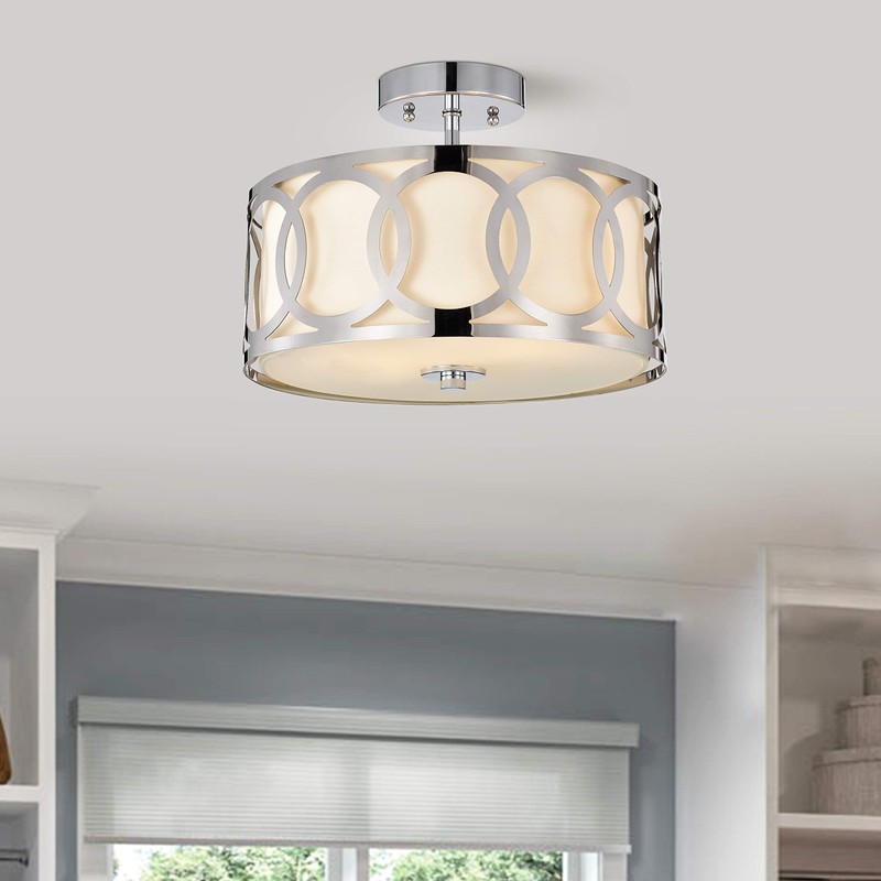 Chloe Lighting Bronx Transitional 2 Light Chrome Semi-Flush Ceiling Fixture 30" Wide