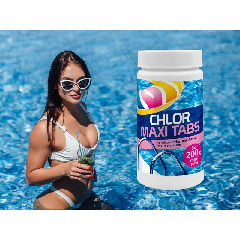 - Chlorine Maxi Tabs - slow dissolving - continuous disinfection of pool water - slow dissolving chlorine-based agent for continuous disinfection of swimming pool water. Due to its tablet shape, the product is extremely easy and convenient to use.