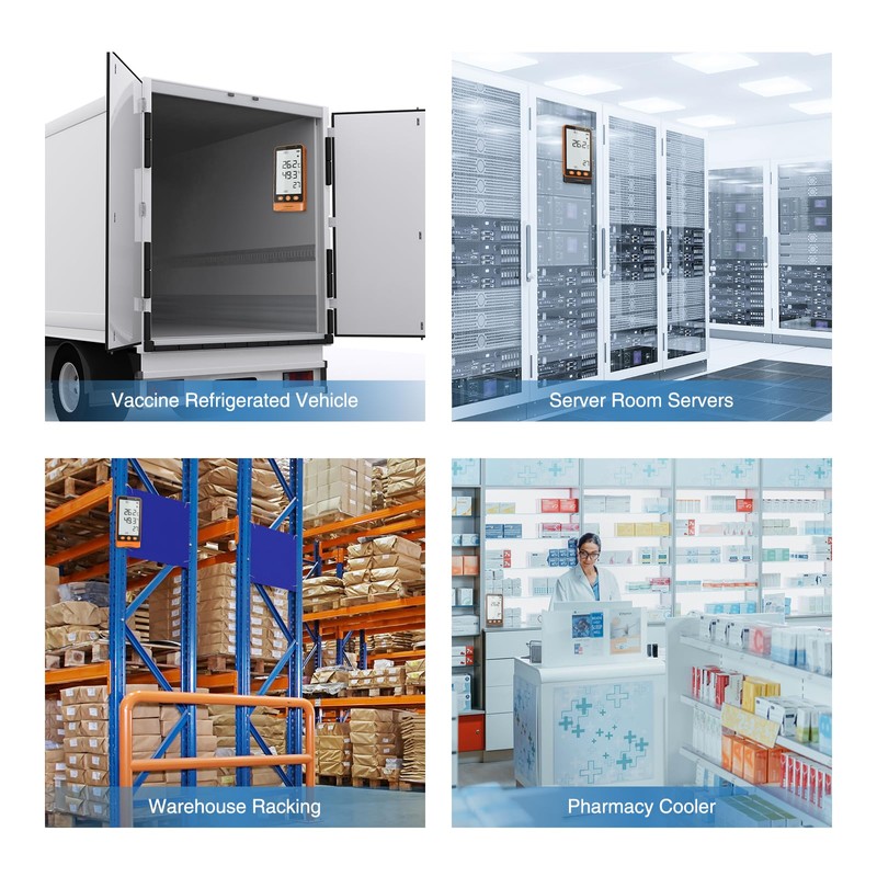 - ✅Ultra-Precise Monitoring: Measures temperature (±0.3°C)with 0.1 resolution, ideal for pharmaceuticals, food safety, and labs.