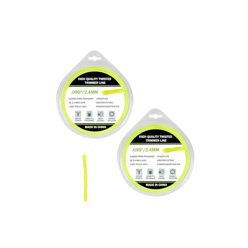 • CHNPLUM 095 Twisted trimmer line x 200-Foot - 0.095'' Weed Eater String Replacement for Ryobi, Ego, ECHO, Husqvarna, etc, Yellow 2 Pcs