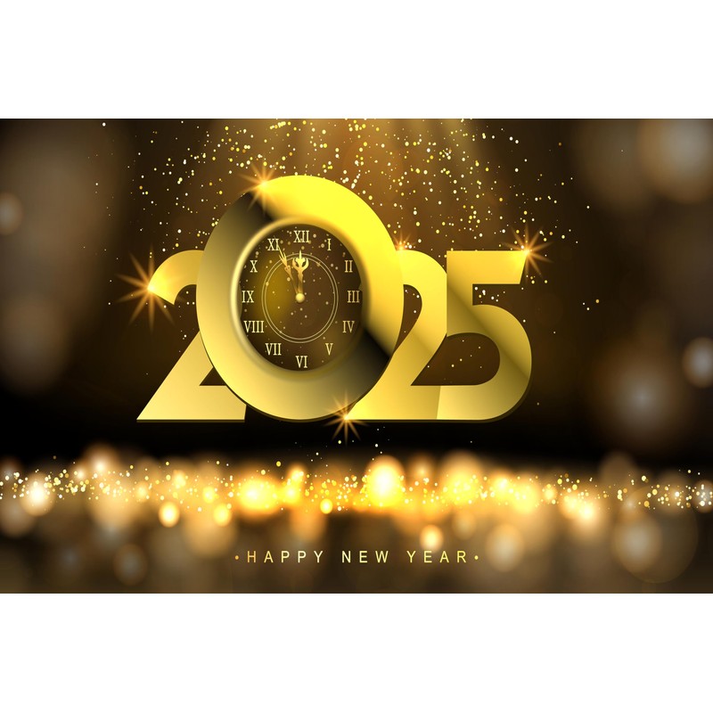 CHNYWORK 7x5ft Happy New Year Backdrop 2025 Golden Clock Countdown Bokeh Shining Background Happy New Year Eve Party Decoration Portrait Photo Studio Booth Props Wallpaper