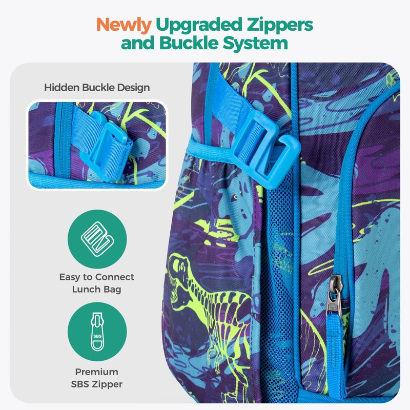 - Kids Backpacks for Girls: Multiple pockets, new models with new snaps, can hang a lunch bag on your school bag (pictures with snaps on the left and right side are the new models), can hold a water bottle, perfect for daily, school and travel use
