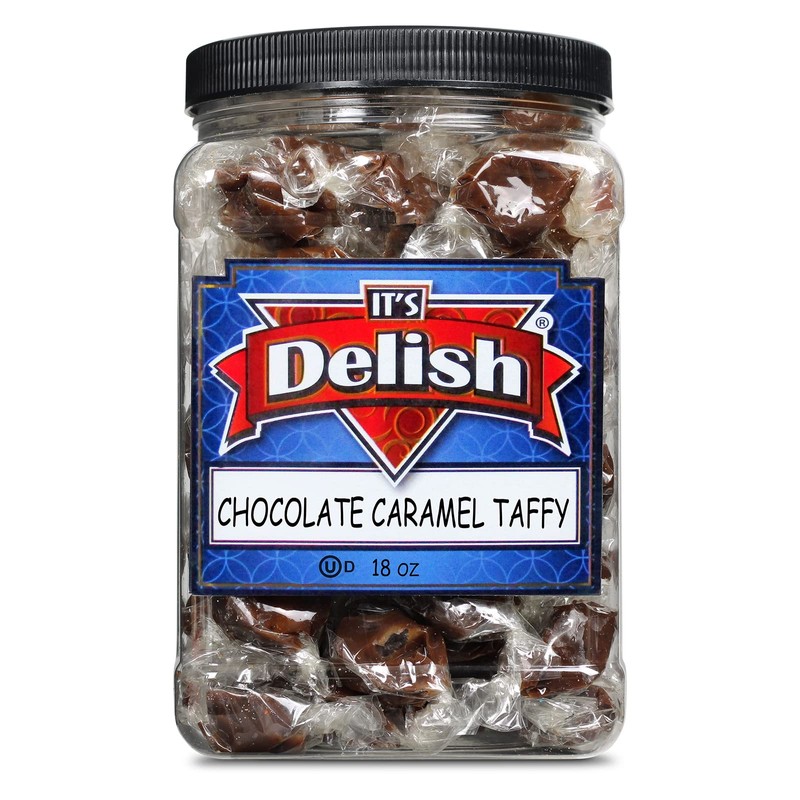 Chocolate Caramel by Its Delish, 18 OZ Jumbo Container Jar – Individually Wrapped Handcrafted Soft Brown Candy – Great Candy Gifts Party Sweets for Home Office | Certified Kosher Dairy