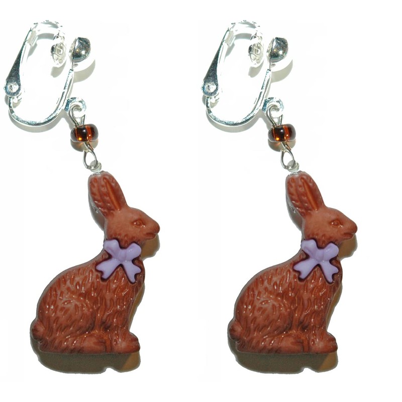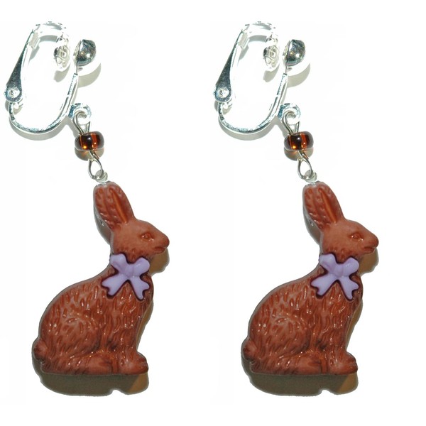 Chocolate Easter Bunny Clip On Dangle Earrings (H139clip)