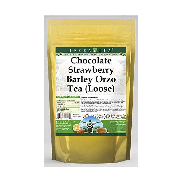 - Our Chocolate Strawberry Barley Orzo tea is a tasty naturally flavored Barley Orzo roasted grain beverage (coffee substitute) with Chocolate Drops, Strawberries and Strawberry Leaf that has a refreshing natural taste that will impress you! The unique Chocolate Strawberry taste is delicious! - Ingredients: Barley Orzo, Chocolate Drops, Strawberries, Strawberry Leaf and Natural Chocolate Strawberry Flavor.