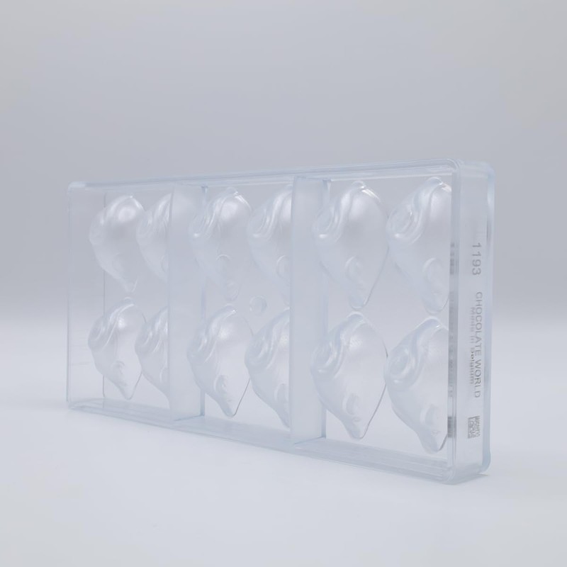 Chocolate World 1193 Polycarbonate Chocolate Mold Candy Mould with 12 Mouse Cavities 32mm x 56mm x 24mm High, Clear, CW1193