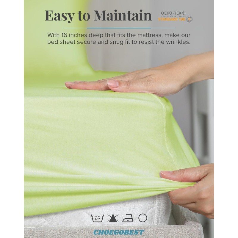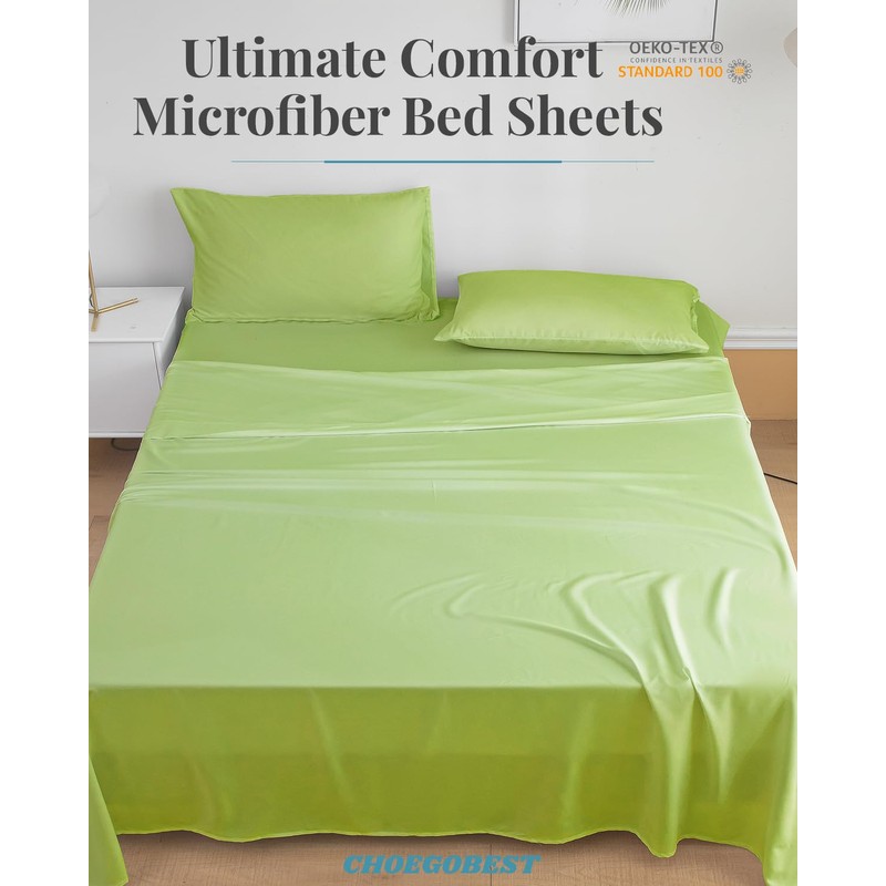 CHOEGOBEST Easy Care Luxury Microfiber Extra Soft and Cooling Bed Sheet Set with Deep Pockets (Lime Green, Full Set of 4)