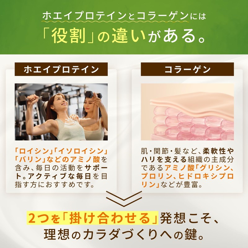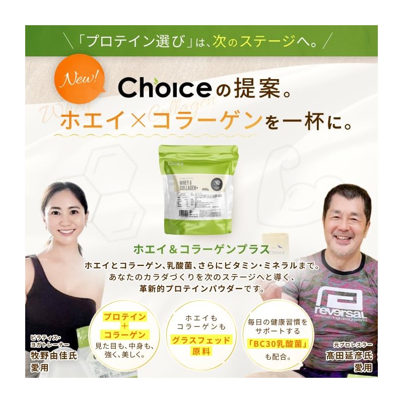 - For all who care about maintaining their health: "Whey & Collagen Plus" is focused on ingredients and quality. This protein is recommended for those who care about maintaining their health, from professional athletes who care about physical management