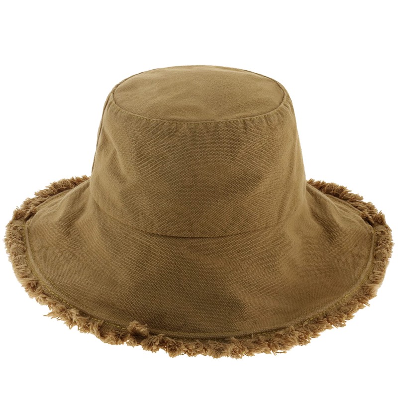 CHOK.LIDS Frayed Bucket Hats for Women Men Unisex Trendy Washed Cotton Floppy Wide Brim Boonie Outdoor Summer Beach Headwear (Khaki)