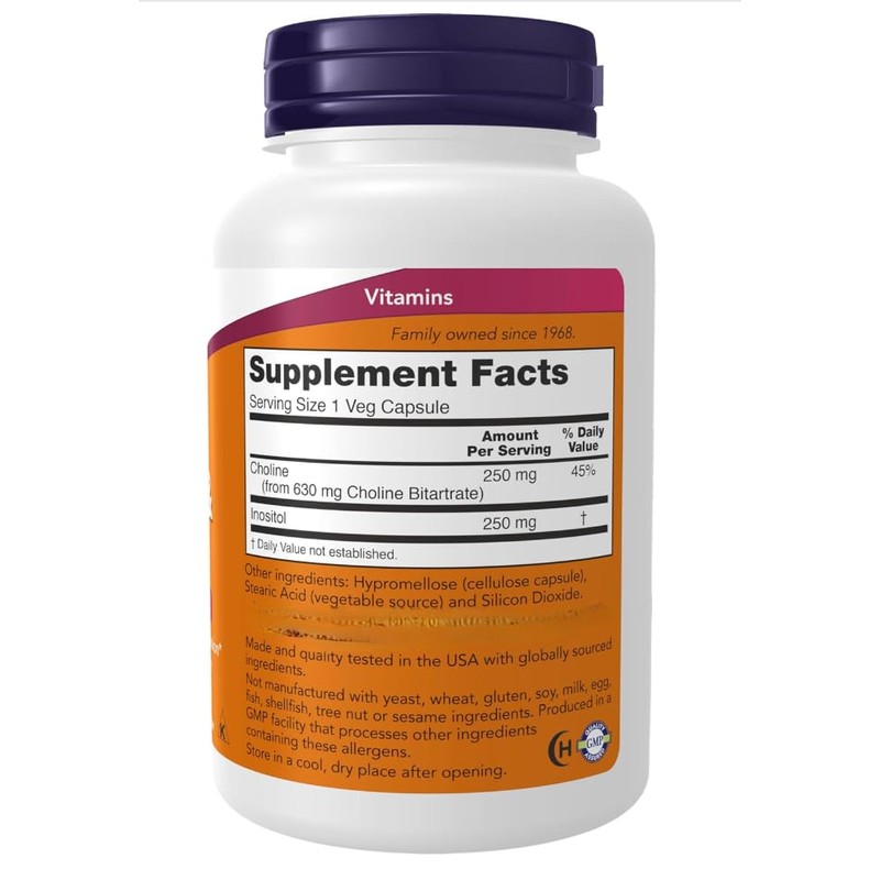 Choliine & Inosiitol 500mg, Herabal Supplement, Non-GMO, Gluten-Free, 100 Vegan Capsules