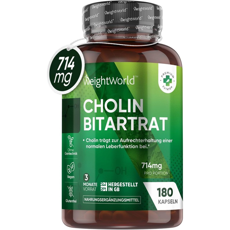 Choline Capsules - 714 mg per Serving - Liver Function, Homocysteine & Fat Metabolism (EFSA) - 180 Vegan Capsules for 3 Months Supply - Choline Bitartrate WeightWorld