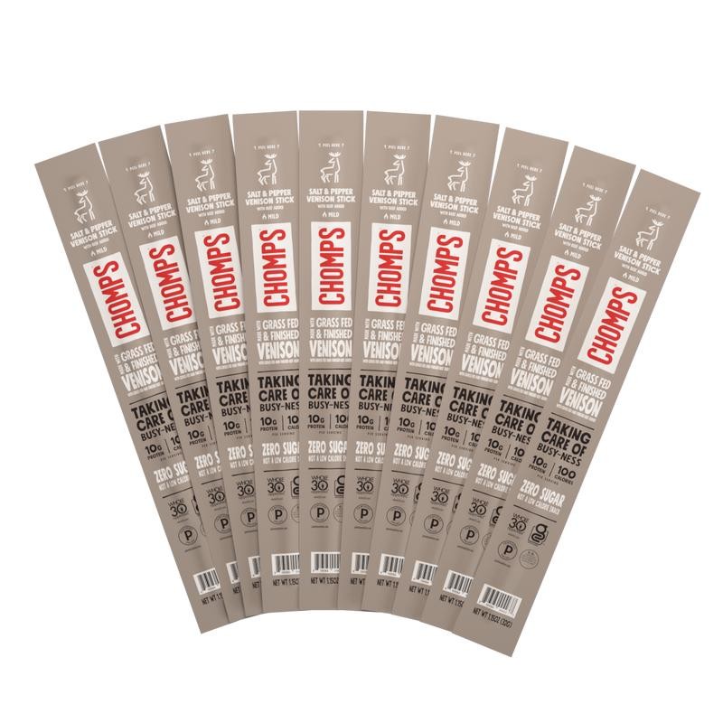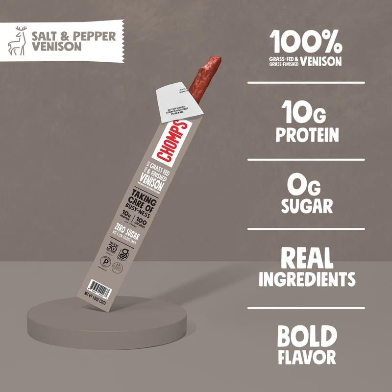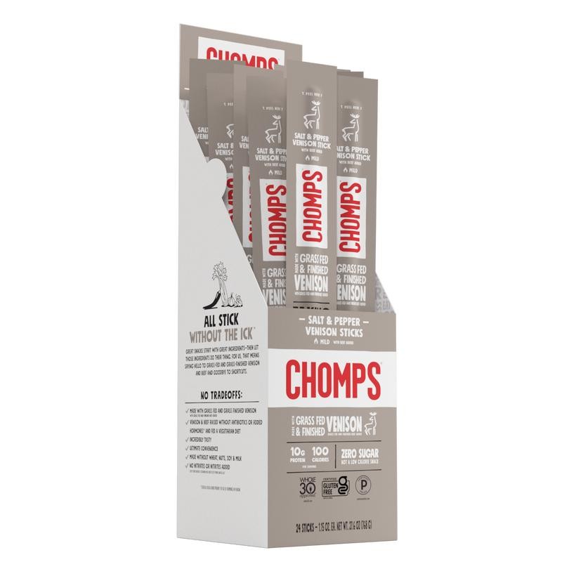 Chomps Salt & Pepper Grass-Fed and Finished Venison Stick - Box: 24 Pack