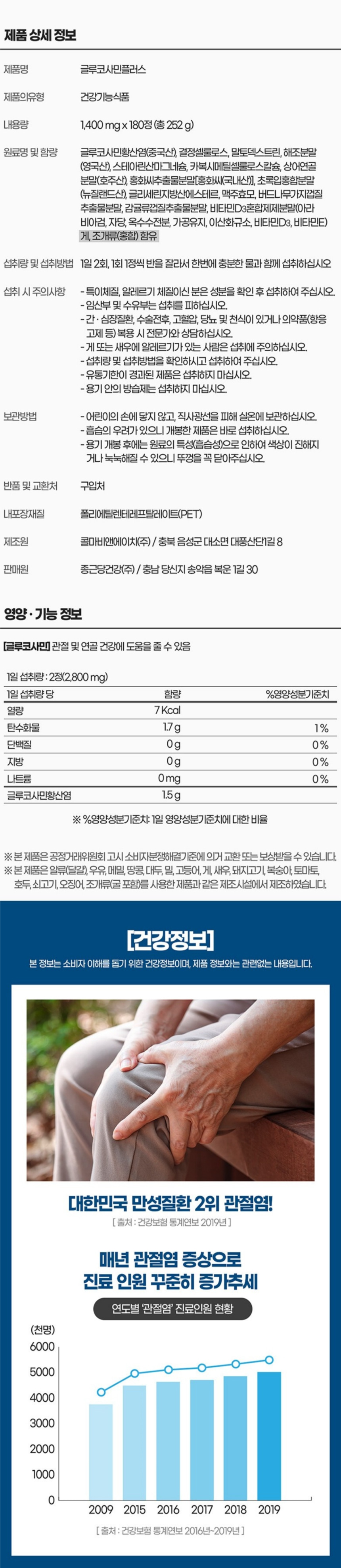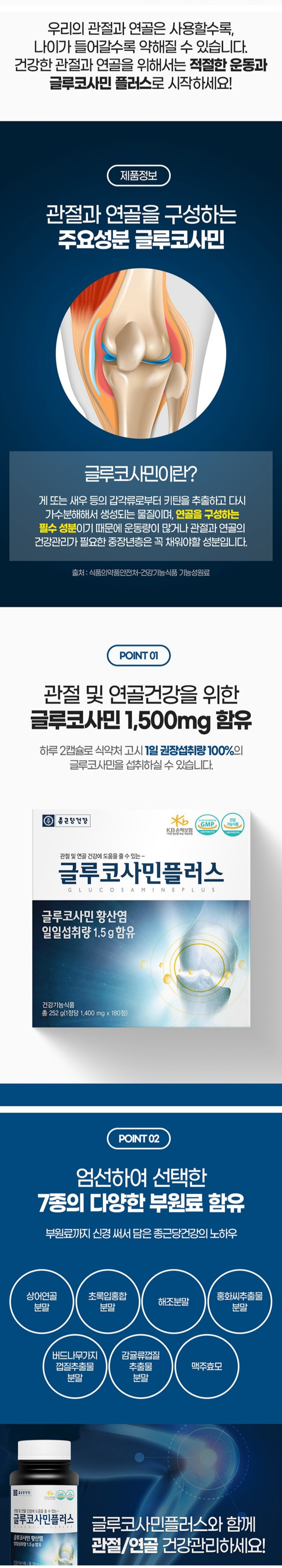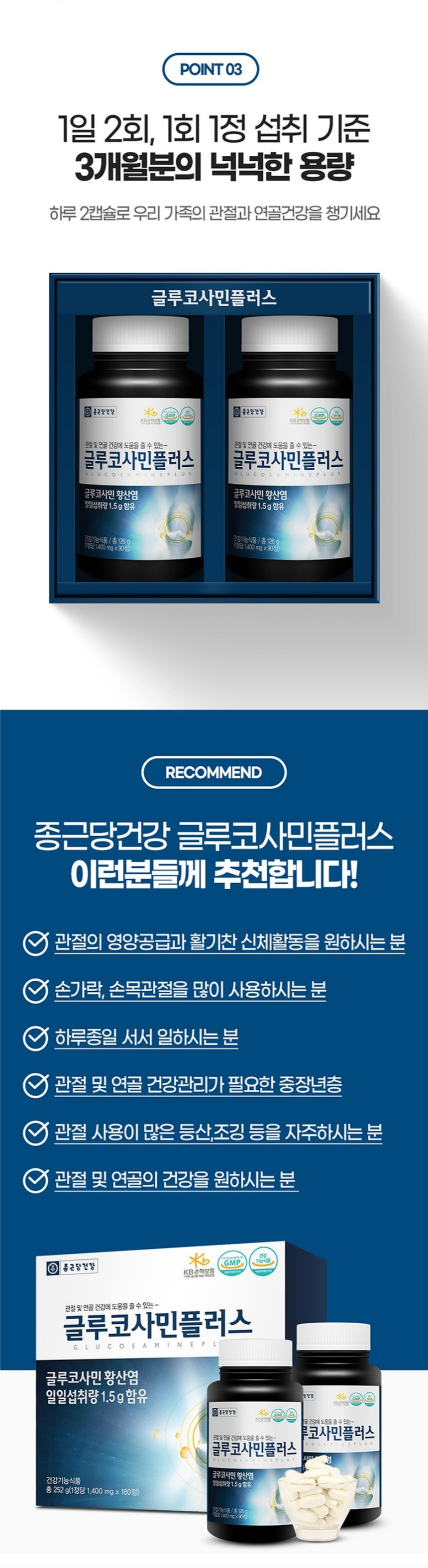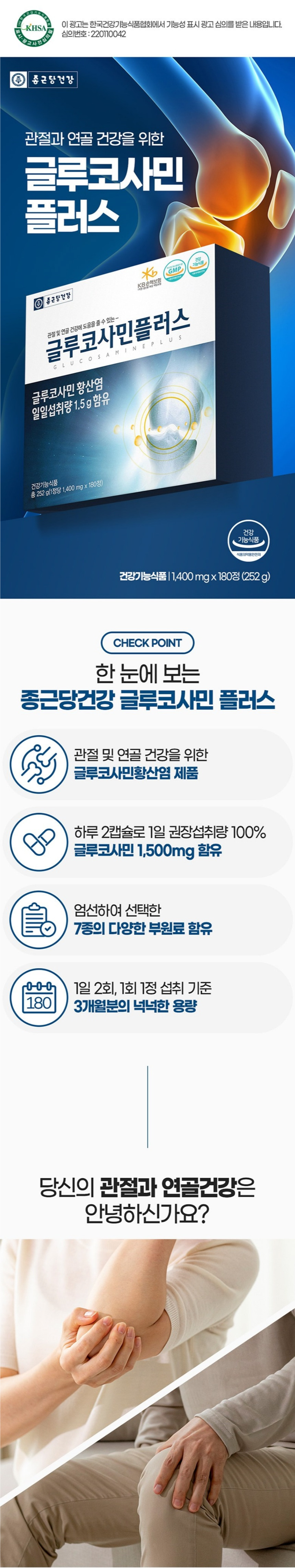 Chong Kun Dang Health Glucosamine Plus 1400mg x 180 tablets / 종근당건강 글루코사민플러스 1400mg x 180정