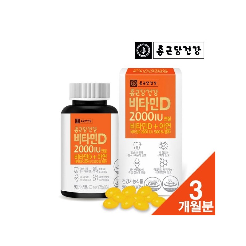 Chong Kun Dang Health Vitamin D 2000IU 1 box 3 months supply, none / 종근당건강 비타민D 2000IU 1박스 3개월분, 없음
