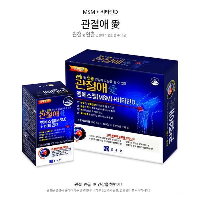 Chong Kun Dang [On Sale] Joint Care MSM Vitamin D 240 Tablets Cartilage MSM Dietary Sulfur Nutritional Supplement / 종근당 [온세일]관절애 MSM 비타민D 240정 연골 엠에스엠 식이유황 영양제