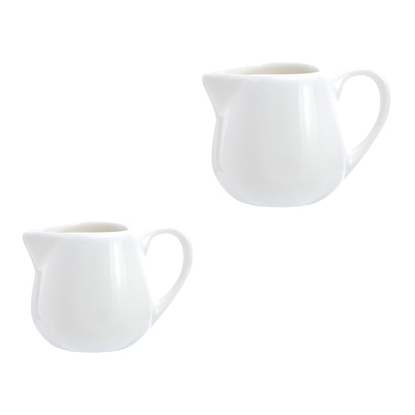 CHOOLD 2 pcs Mini Ceramic Creamer with Handle, Coffee Milk Creamer Pitcher - White - 1.5 oz + 3 oz