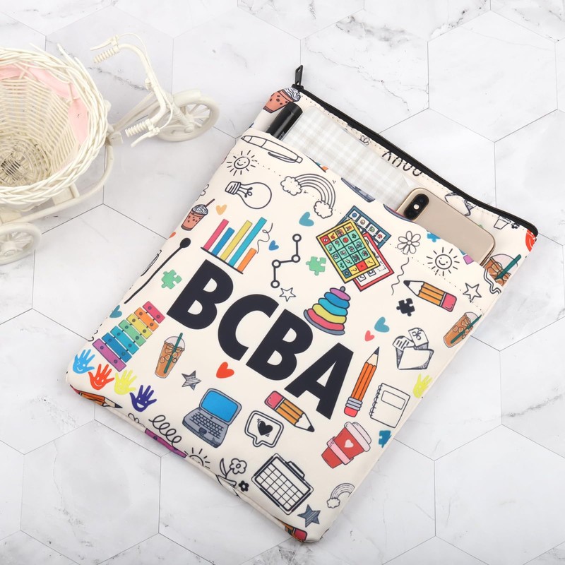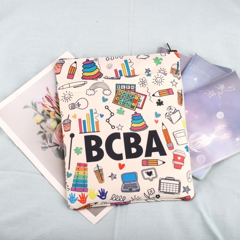 • Show your appreciation for the BCBA in your life (or treat yourself because you earned it!!) with this cute BCBA book sleeve.
